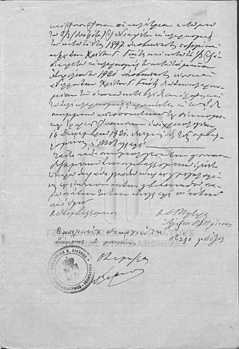 [Τεκμήριο] GRGSA-IAE_NOT002.01.F000037.IT015450 Τεκμήριο #15450 [16 Δεκεμβρίου 1921] Συμβολαιογραφική πράξη. Πωλητήριο ακινήτου. |