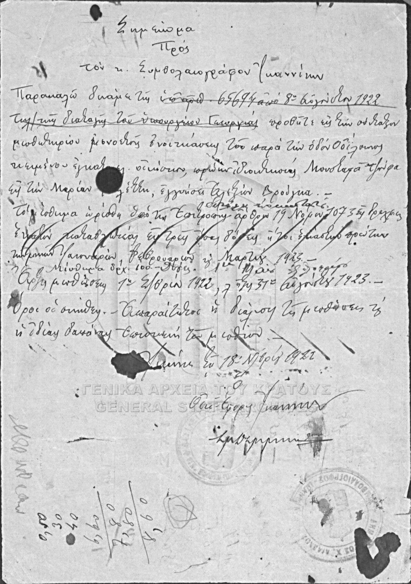 [Item] GRGSA-IAE_NOT002.01.F000046.IT018385 Item #18385 [3 Απριλίου 1923] Notarial deed. Lease. |