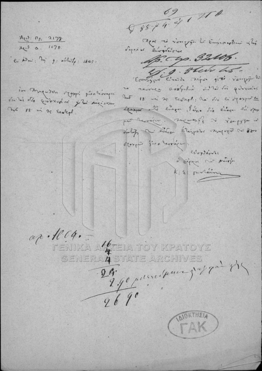 [Fonds] GRGSA-CSA_PAO013 SECRETARIAT/MINISTRY OF ECCLESIASTICAL ISSUES AND STATE EDUCATION ARCHIVE (1833-1848) - SECRETARIAT/MINISTRY OF ECCLESIASTICAL ISSUES AND STATE EDUCATION ARCHIVE (1833-1848) [1833 - 1848] Το αρχείο της Γραμματείας επί των Εκκλησιαστικών και της Δημοσίου Εκπαιδεύσεως διαρθρώνεται σε τρεις σειρές ως εξής: Ι. Σειρά των Εκκλη... |