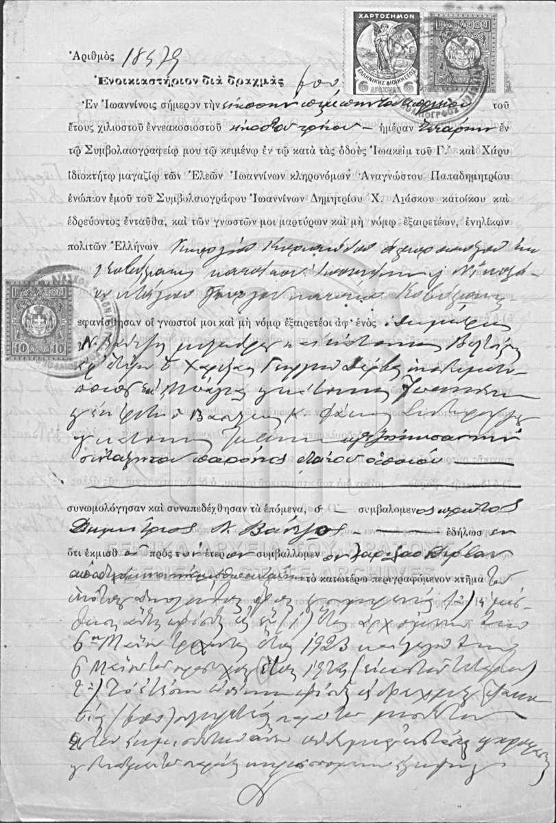 [Τεκμήριο] GRGSA-IAE_NOT002.01.F000046.IT018479 Τεκμήριο #18479 [25 Απριλίου 1923] Συμβολαιογραφική πράξη. Ενοικιαστήριο. |