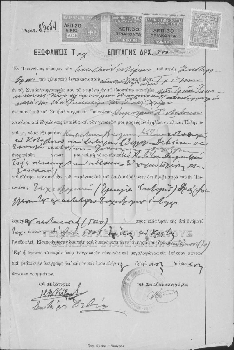 [Τεκμήριο] GRGSA-IAE_NOT002.01.F000059.IT023054 Τεκμήριο #23054 [22 Σεπτεμβρίου 1925] Συμβολαιογραφική πράξη. Εξόφληση ταχυδρομικής επιταγής. |