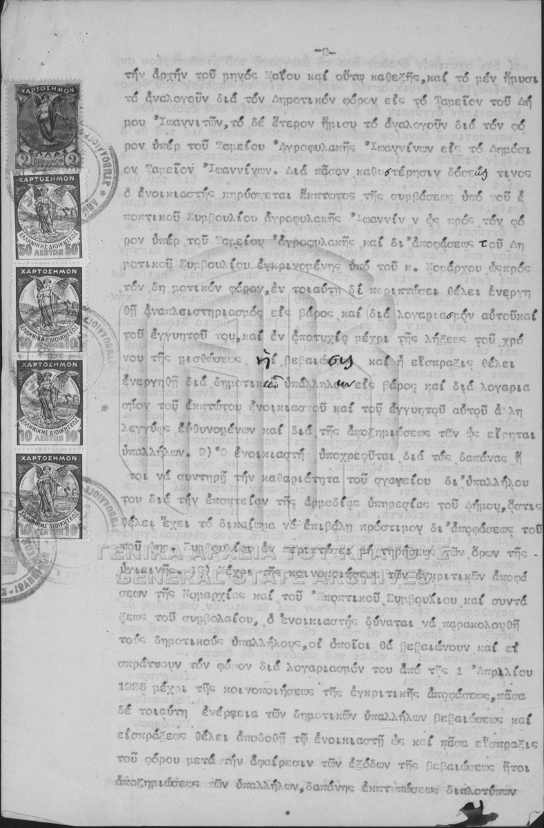 [Pièce] GRGSA-IAE_NOT002.01.F000059.IT023163 Pièce #23163 [12 Οκτωβρίου 1925] Συμβολαιογραφική πράξη. Μίσθωση δημοτικού έργου. |