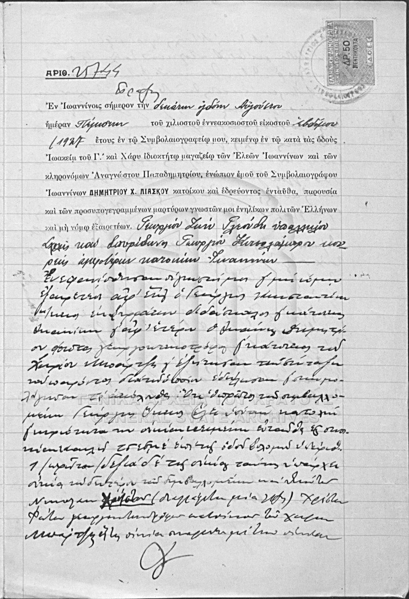 [Τεκμήριο] GRGSA-IAE_NOT002.01.F000066.IT025744 Τεκμήριο #25744 [18 Αυγούστου 1927] Συμβολαιογραφική πράξη. |