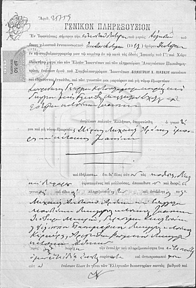 [Item] GRGSA-IAE_NOT002.01.F000066.IT025759 Item #25759 [22 Αυγούστου 1927] Συμβολαιογραφική πράξη. Γενικό πληρεξούσιο. |