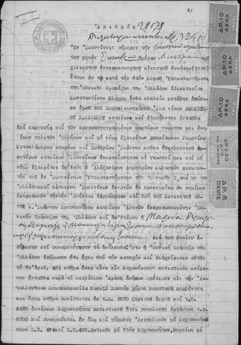 [Item] GRGSA-IAE_NOT002.01.F000077.IT028578 Item #28578 [21 Οκτωβρίου 1929] Notarial deed. Real estate property sale agreement. |