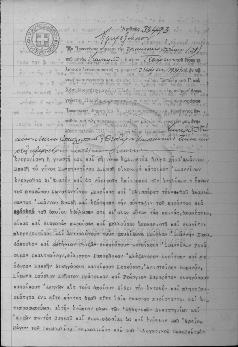 [Item] GRGSA-IAE_NOT002.01.F000098.IT033493 Item #33493 [31 Ιανουαρίου 1931] Notarial deed. Power of attorney. |