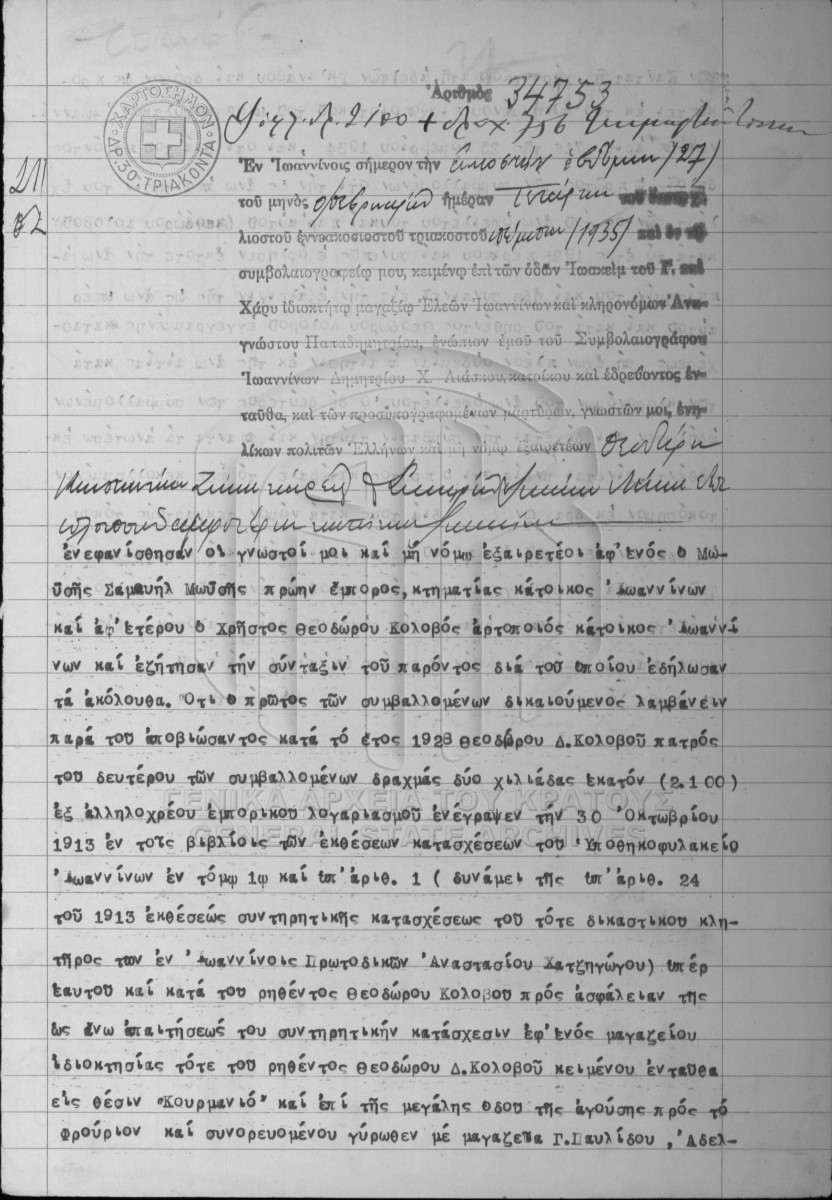 [Item] GRGSA-IAE_NOT002.01.F000102.IT034753 Item #34753 [27 Φεβρουαρίου 1935] Συμβολαιογραφική πράξη. Εξόφληση (και) τεκμαρτών τόκων. |