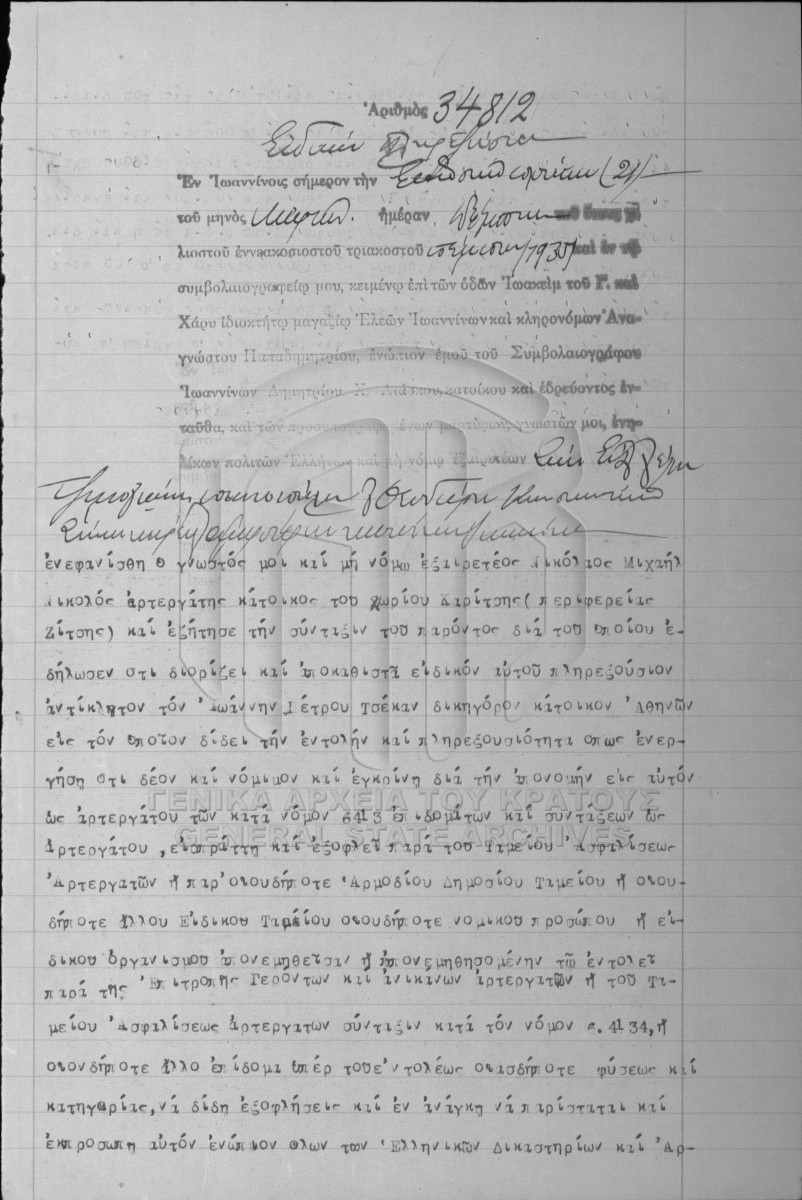 [Τεκμήριο] GRGSA-IAE_NOT002.01.F000102.IT034812 Τεκμήριο #34812 [21 Μαρτίου 1935] Συμβολαιογραφική πράξη. Ειδικό πληρεξούσιο. |