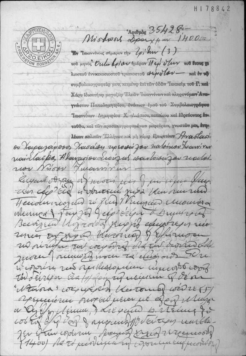 [Pièce] GRGSA-IAE_NOT002.01.F000104.IT035428 Pièce #35428 [3 Οκτωβρίου 1935] Συμβολαιογραφική πράξη. Μίσθωση. |