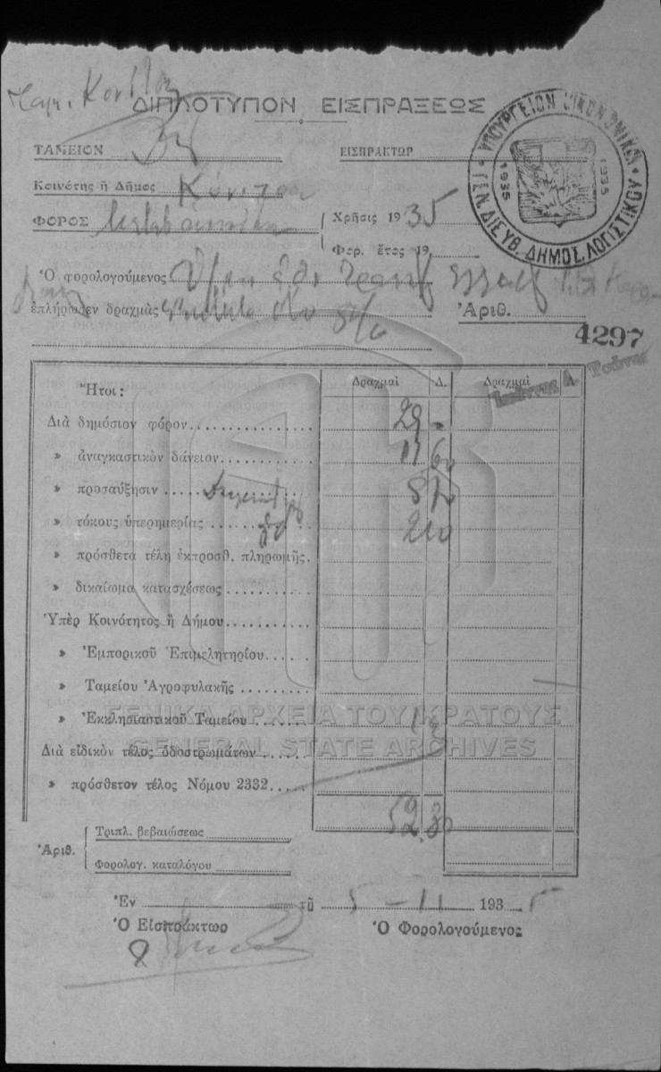 [Τεκμήριο] GRGSA-IAE_NOT002.01.F000104.IT035537 Τεκμήριο #35537 [7 Νοεμβρίου 1935] Συμβολαιογραφική πράξη. Αγοραπωλησία ακινήτου. |