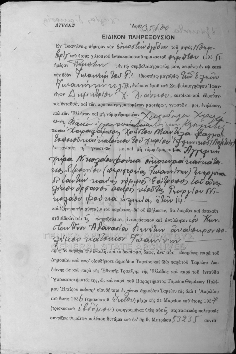[Τεκμήριο] GRGSA-IAE_NOT002.01.F000104.IT035600 Τεκμήριο #35600 [28 Νοεμβρίου 1935] Συμβολαιογραφική πράξη. Ειδικό πληρεξούσιο. |