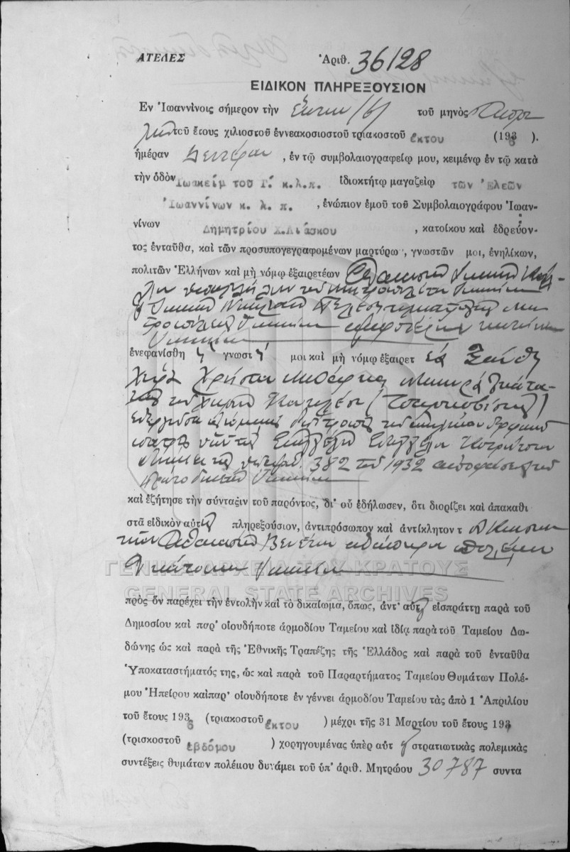 [Item] GRGSA-IAE_NOT002.01.F000106.IT036128 Item #36128 [6 Απριλίου 1936] Notarial deed. Special power of attorney. |
