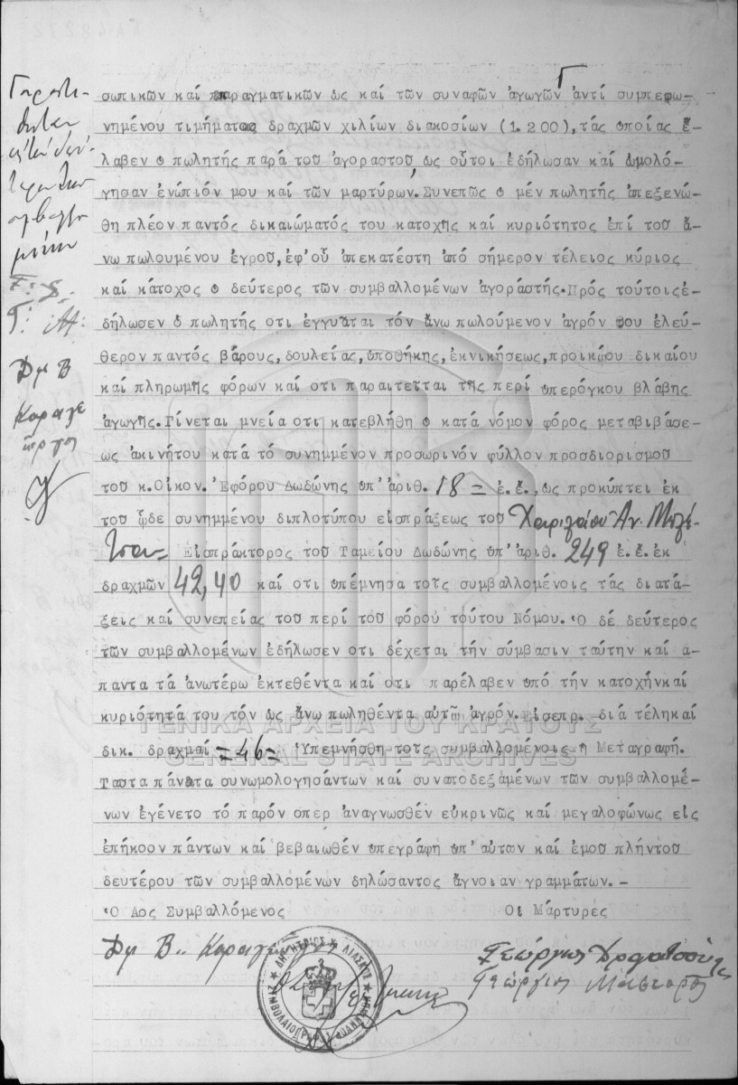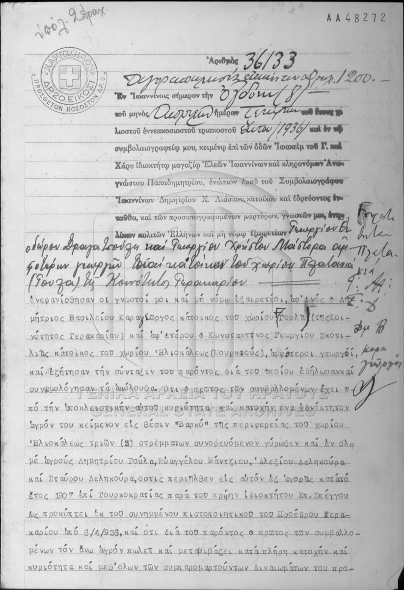 [Item] GRGSA-IAE_NOT002.01.F000106.IT036133 Item #36133 [8 Απριλίου 1936] Notarial deed. Real estate transaction of sale. |