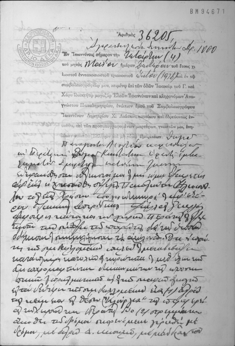 [Item] GRGSA-IAE_NOT002.01.F000106.IT036205 Item #36205 [4 Μαΐου 1936] Notarial deed. Real estate transaction of sale. |