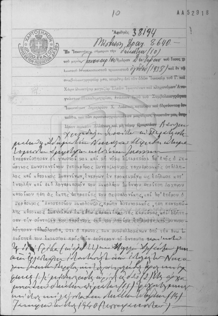 [Item] GRGSA-IAE_NOT002.01.F000113.IT038194 Item #38194 [10 Ιανουαρίου 1938] Notarial deed. Lease. |