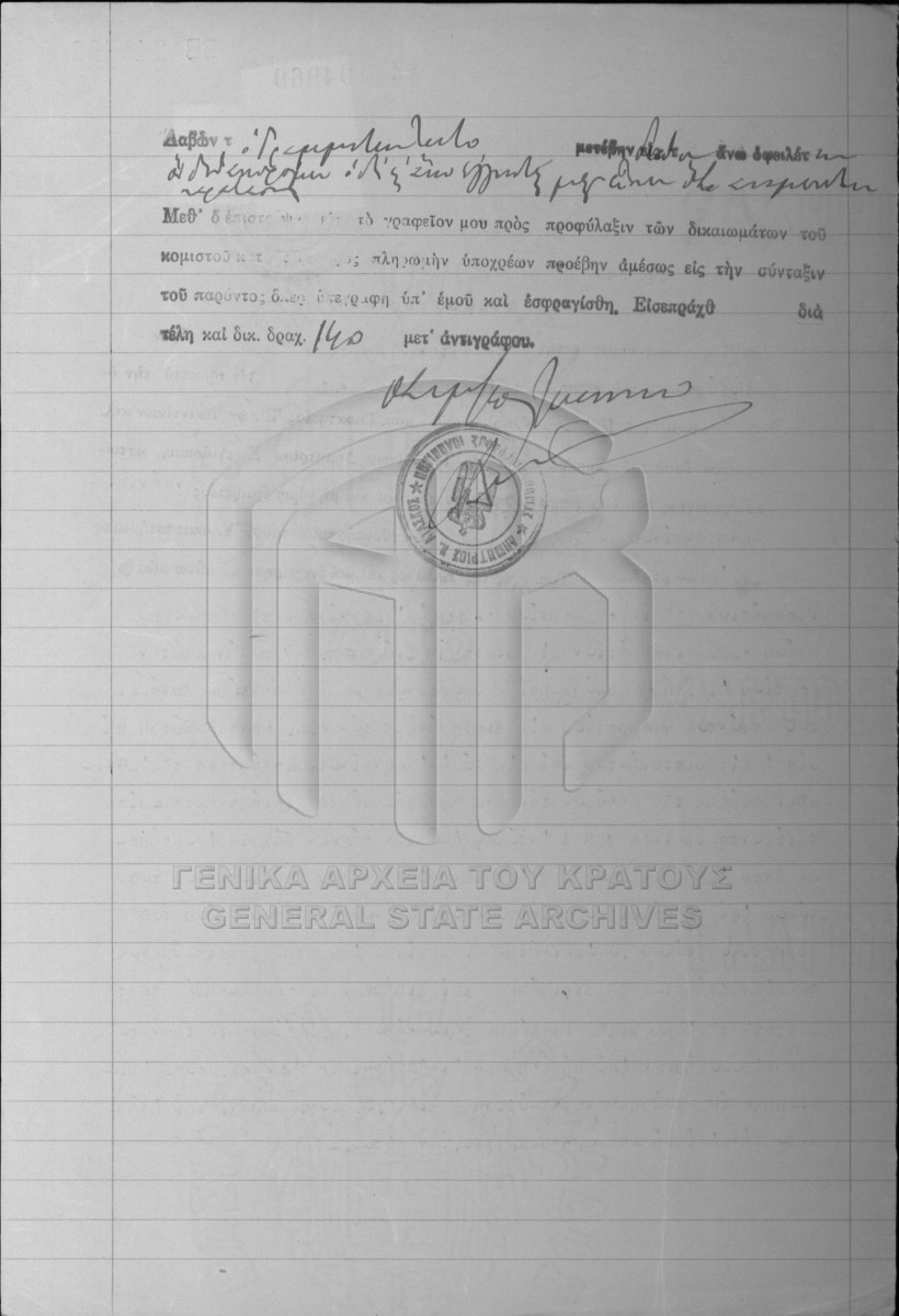 [Pièce] GRGSA-IAE_NOT002.01.F000120.IT040656 Pièce #40656 [4 Μαρτίου 1940] Συμβολαιογραφική πράξη. Διαμαρτυρικό. |