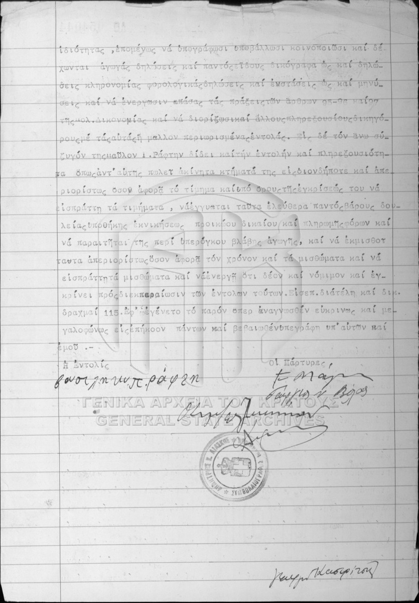 [Pièce] GRGSA-IAE_NOT002.01.F000123.IT041755 Pièce #41755 [30 Αυγούστου 1941] Συμβολαιογραφική πράξη. Πληρεξούσιο. |