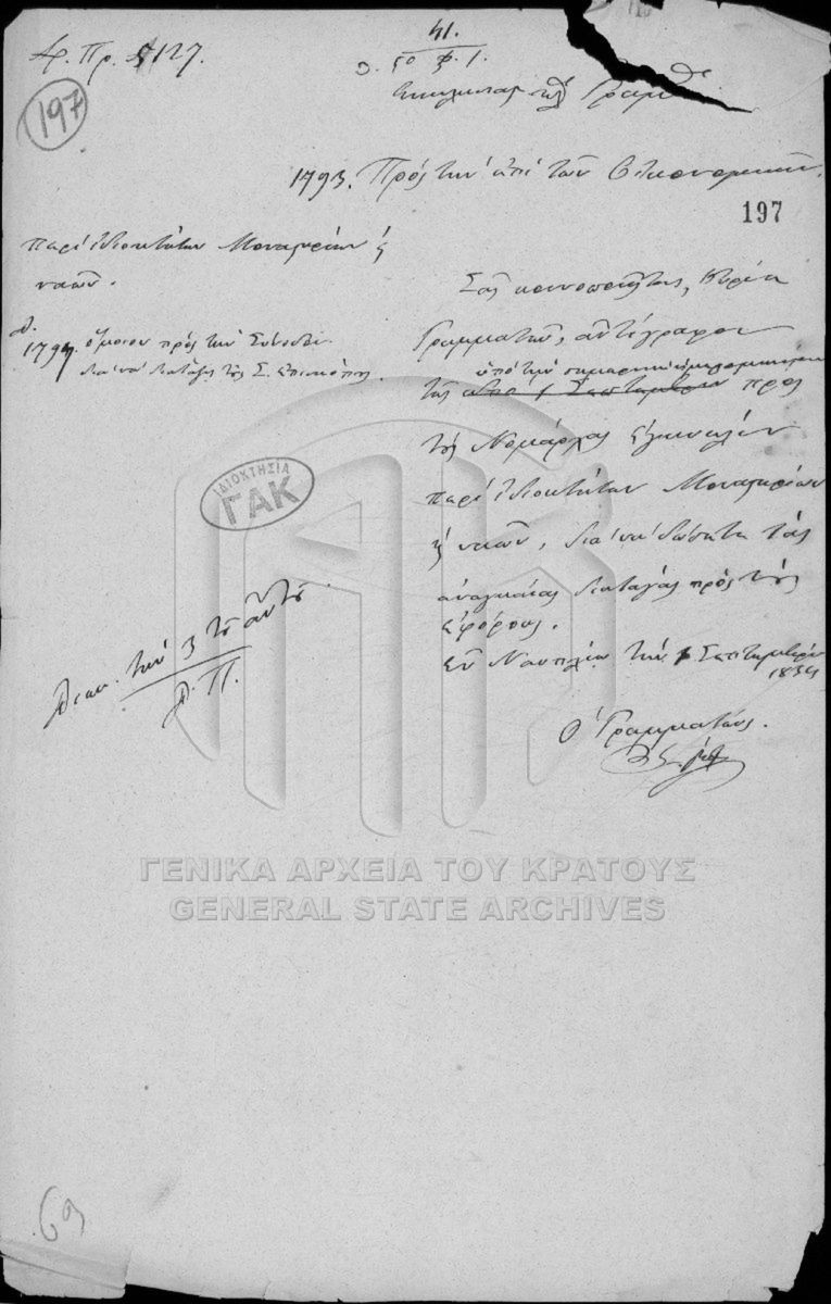Περιέχει γενικά μοναστηριακά έγγραφα περί των Μοναστηριών του Κράτους, διατάξεις και έγγραφα που αφορούν όλες εν γένει τις Μονές και μονα...