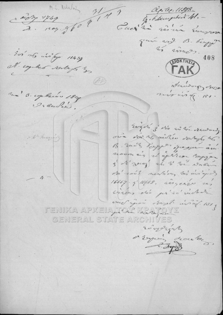 Περιέχει γενικά μοναστηριακά έγγραφα περί των Μοναστηριών του Κράτους, διατάξεις και έγγραφα που αφορούν όλες εν γένει τις Μονές και μονα...
