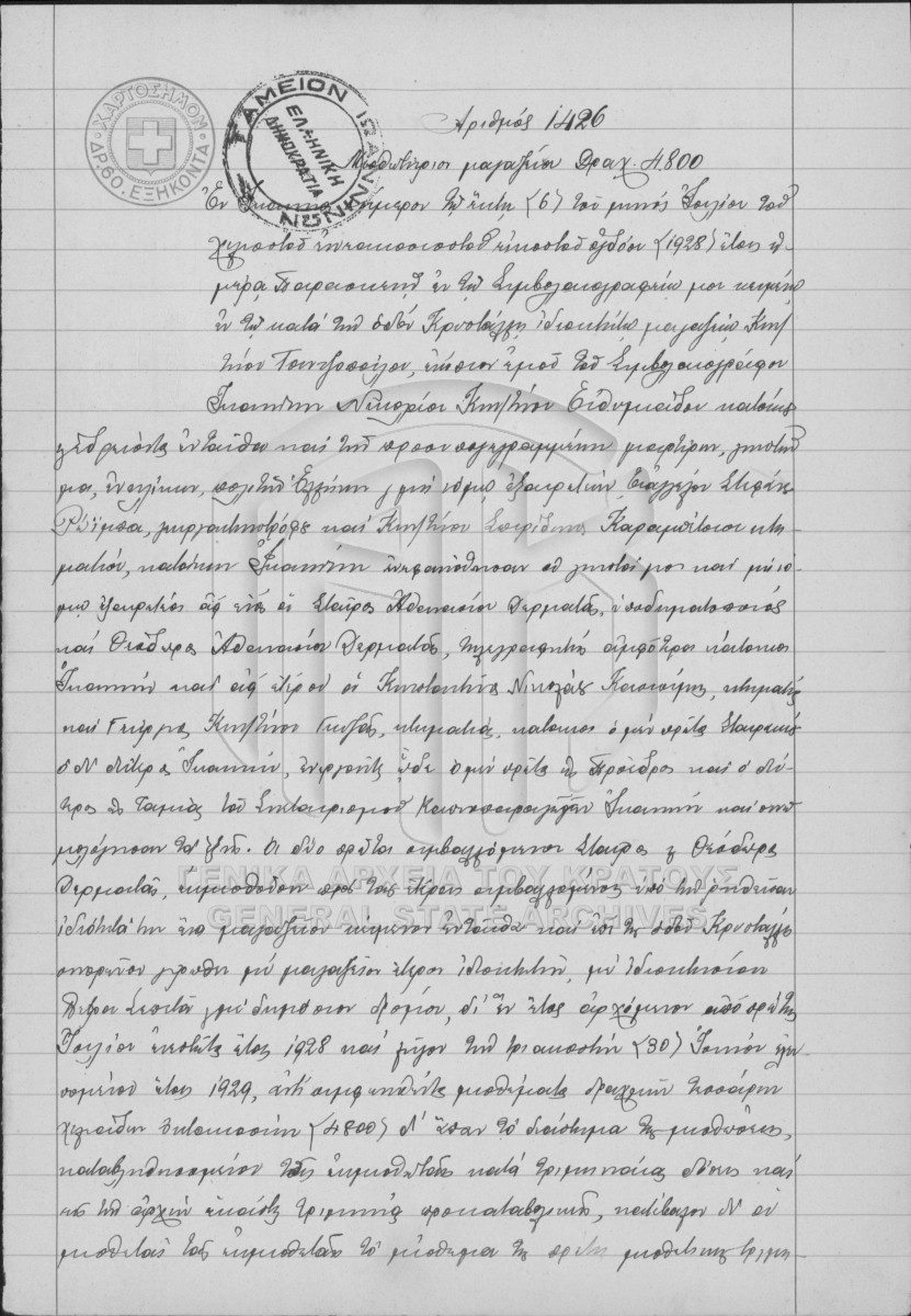 [Τεκμήριο] GRGSA-IAE_NOT004.01.F000004.IT001426 Τεκμήριο #1426 [6 Ιουλίου 1928] Συμβολαιογραφική πράξη. Μισθωτήριο μαγαζείου. |