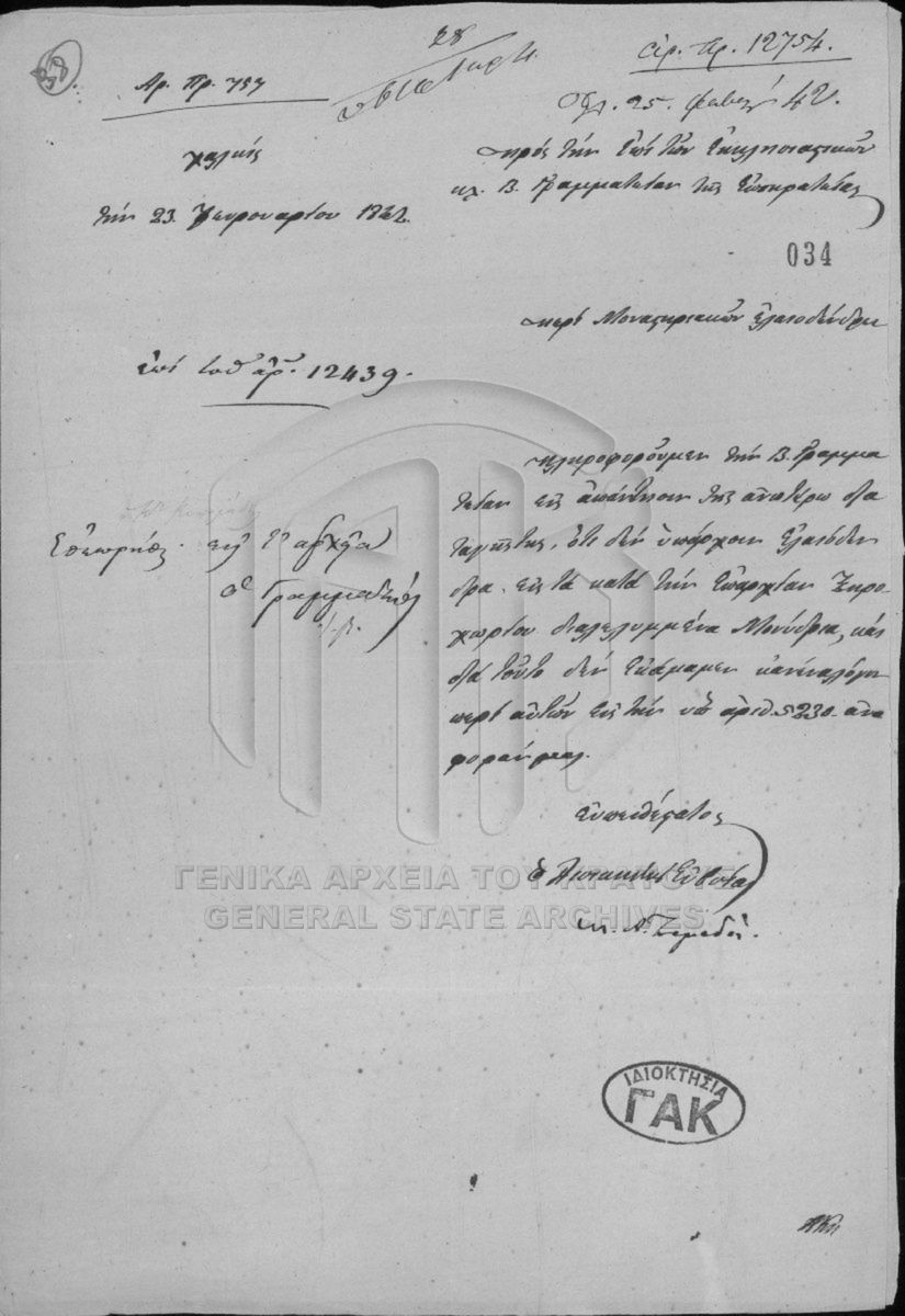 Περιέχει γενικά μοναστηριακά έγγραφα περί των Μοναστηριών του Κράτους, διατάξεις και έγγραφα που αφορούν όλες εν γένει τις Μονές και μονα...