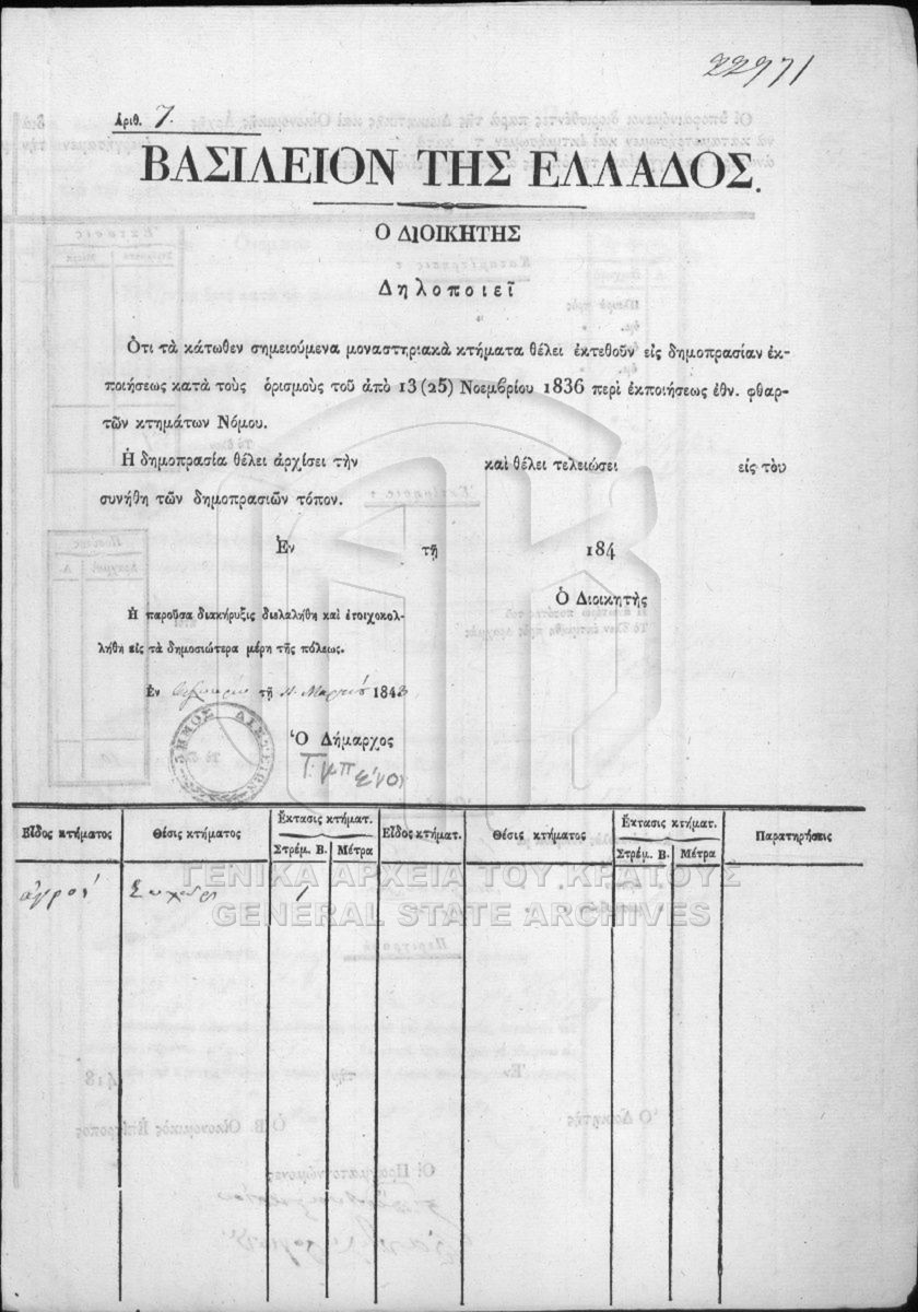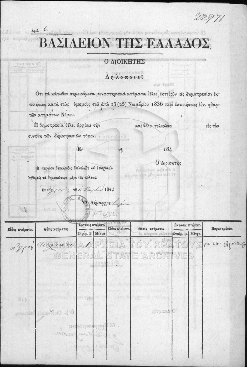Περιέχει γενικά μοναστηριακά έγγραφα περί των Μοναστηριών του Κράτους, διατάξεις και έγγραφα που αφορούν όλες εν γένει τις Μονές και μονα...