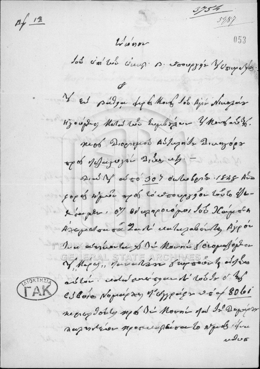 Φάκελος #533 - ΑΡΧΕΙΟ ΜΟΝΑΣΤΗΡΙΑΚΩΝ (1833-1886)  [1831 - 1854]