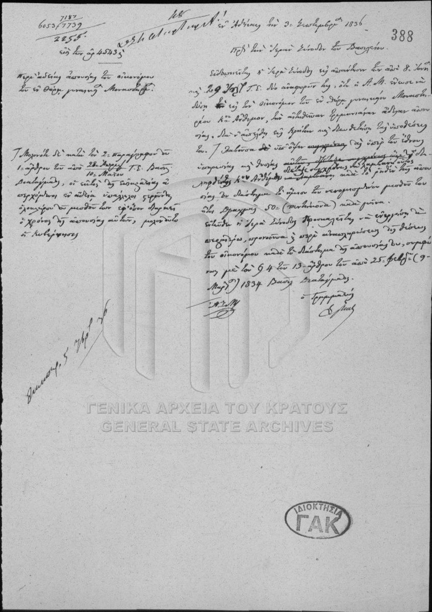 Φάκελος #555 - ΑΡΧΕΙΟ ΜΟΝΑΣΤΗΡΙΑΚΩΝ (1833-1886)  [1832 - 1836]