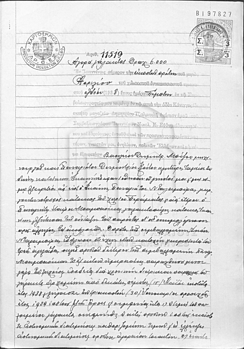 [Τεκμήριο] GRGSA-IAE_NOT004.01.F000040.IT011519 Τεκμήριο #11519 [21 Απριλίου 1938] Συμβολαιογραφική πράξη. Αγορά γάλακτος. |