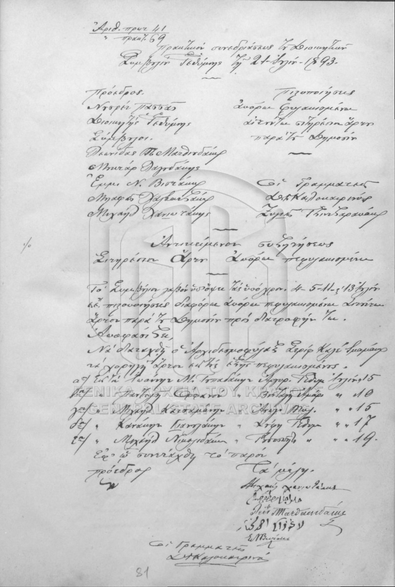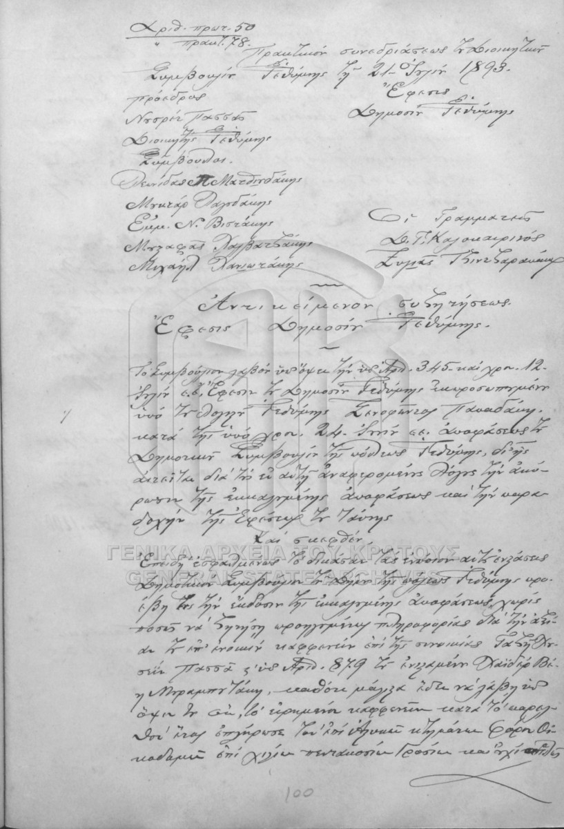 Πρακτικά συνεδριάσεως των Διοικητικών.