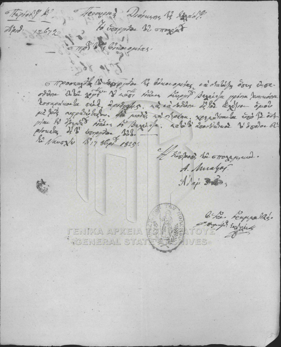 Αρχείο Μινιστέριου/Γραμματείας/Υπουργείου της Οικονομίας (περιόδου Αγώνος)  [1821 - 1827]