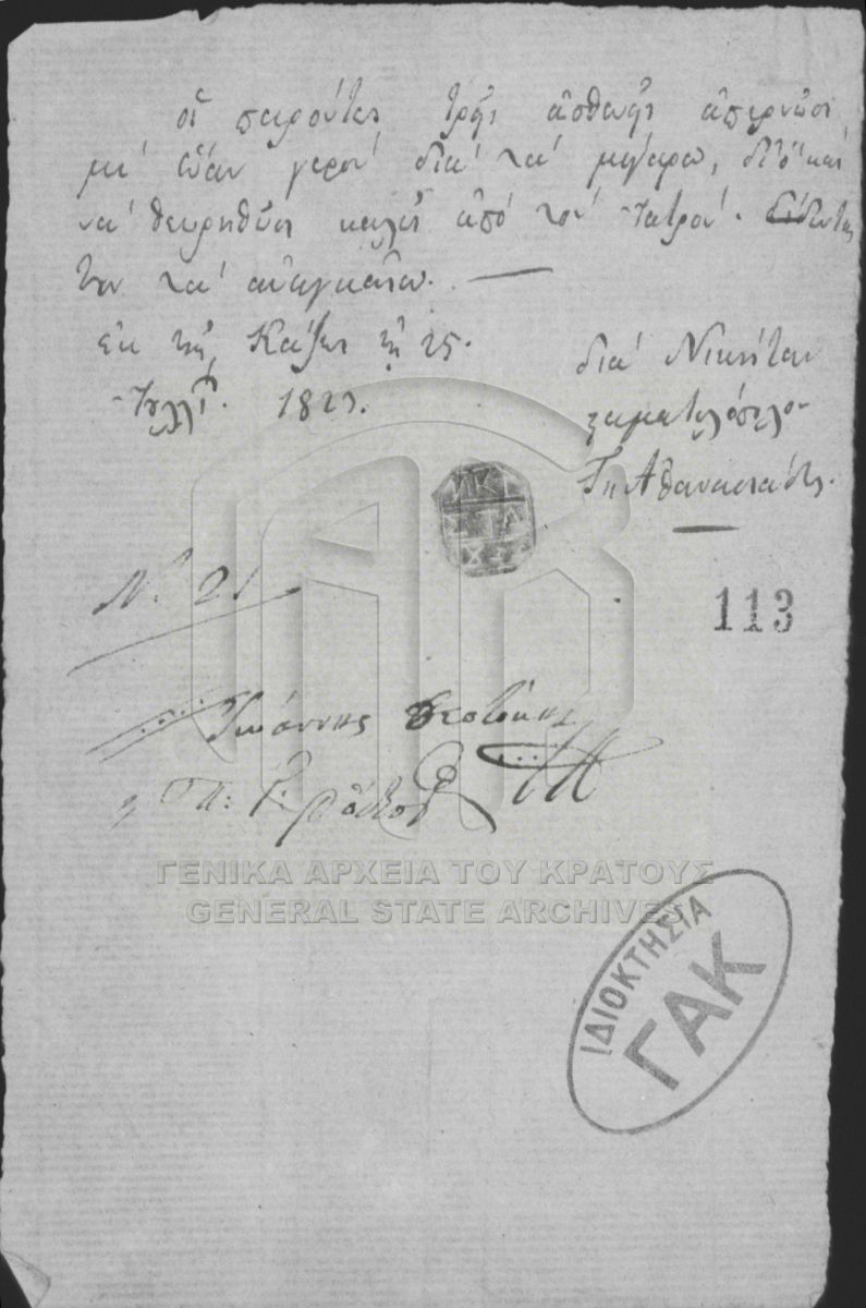 Αρχείο Μινιστέριου/Γραμματείας/Υπουργείου του Πολέμου (περιόδου Αγώνος)  [1822 - 1827]