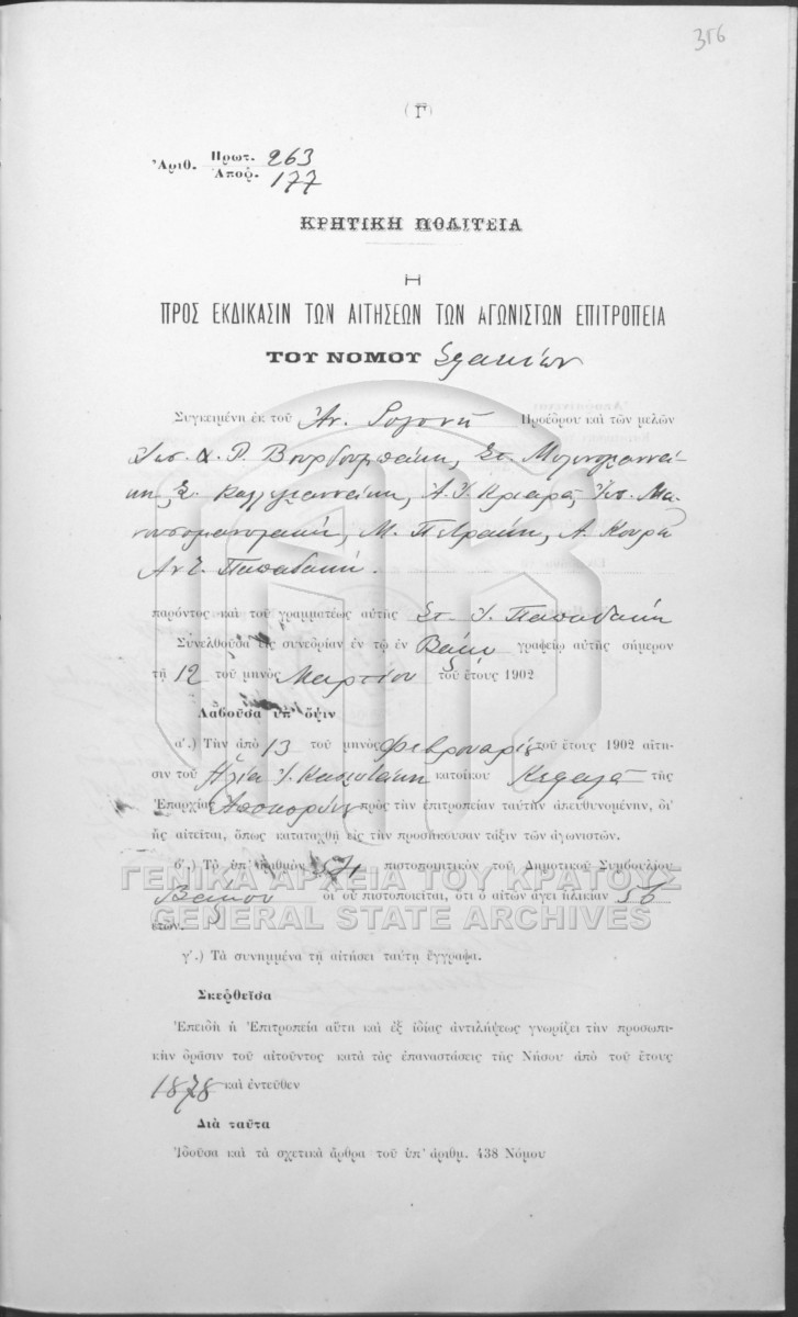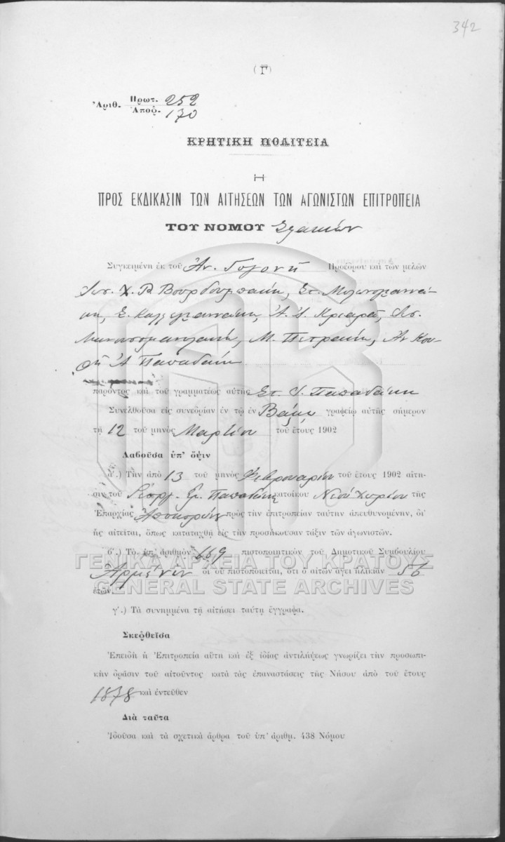 Πρακτικά αποφάσεων Επιτροπής Σφακίων.