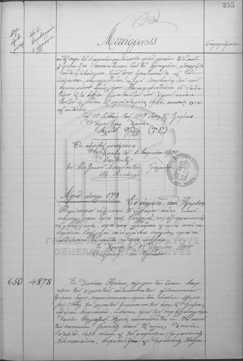 ΑΡΧΕΙΟ ΚΕΝΤΡΙΚΟΥ ΜΕΤΑΦΡΑΣΤΙΚΟΥ ΓΡΑΦΕΙΟΥ (ΧΑΝΙΩΝ)  [1879 - 1931]