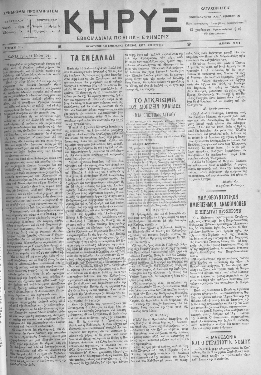 Contents: Κήρυξ.