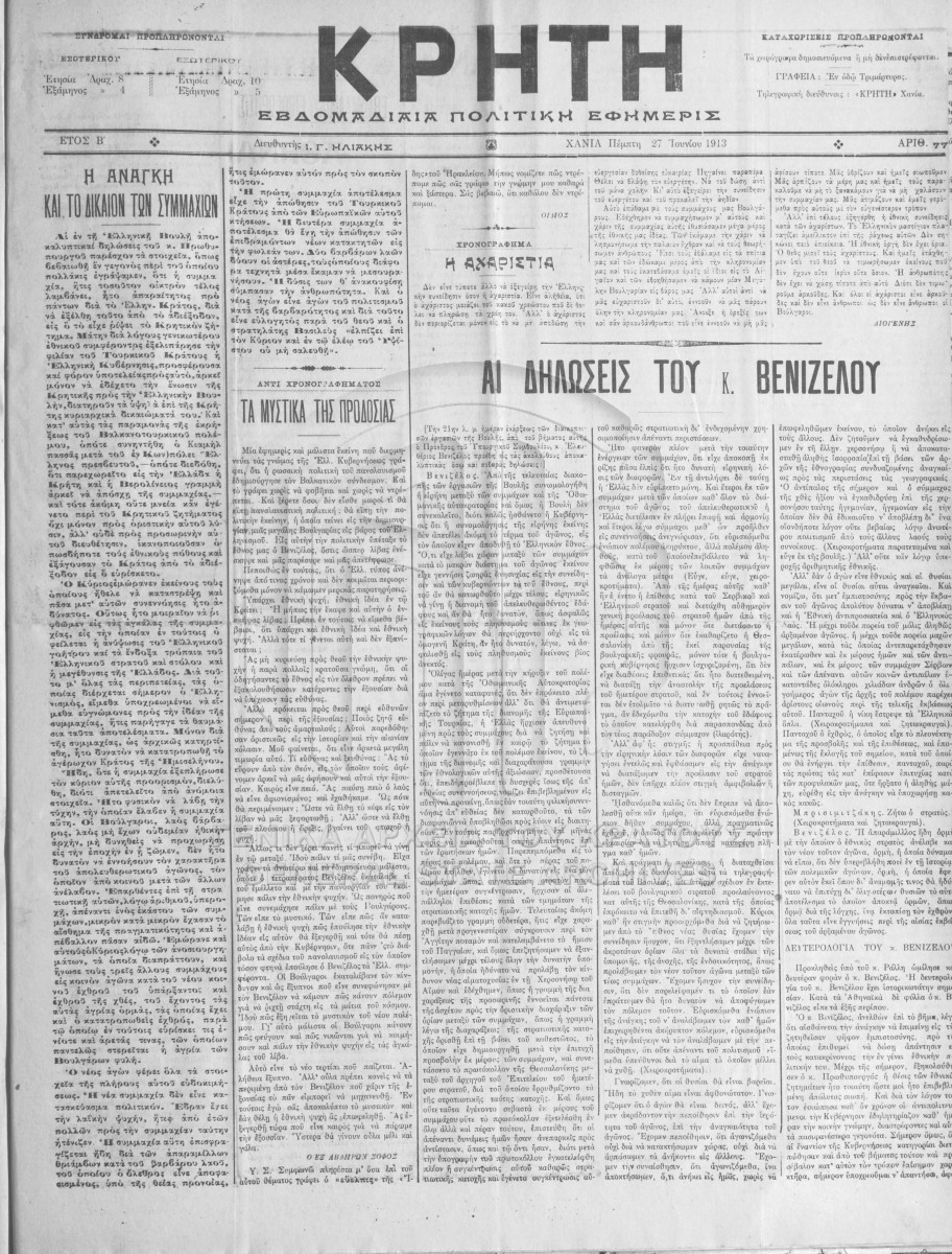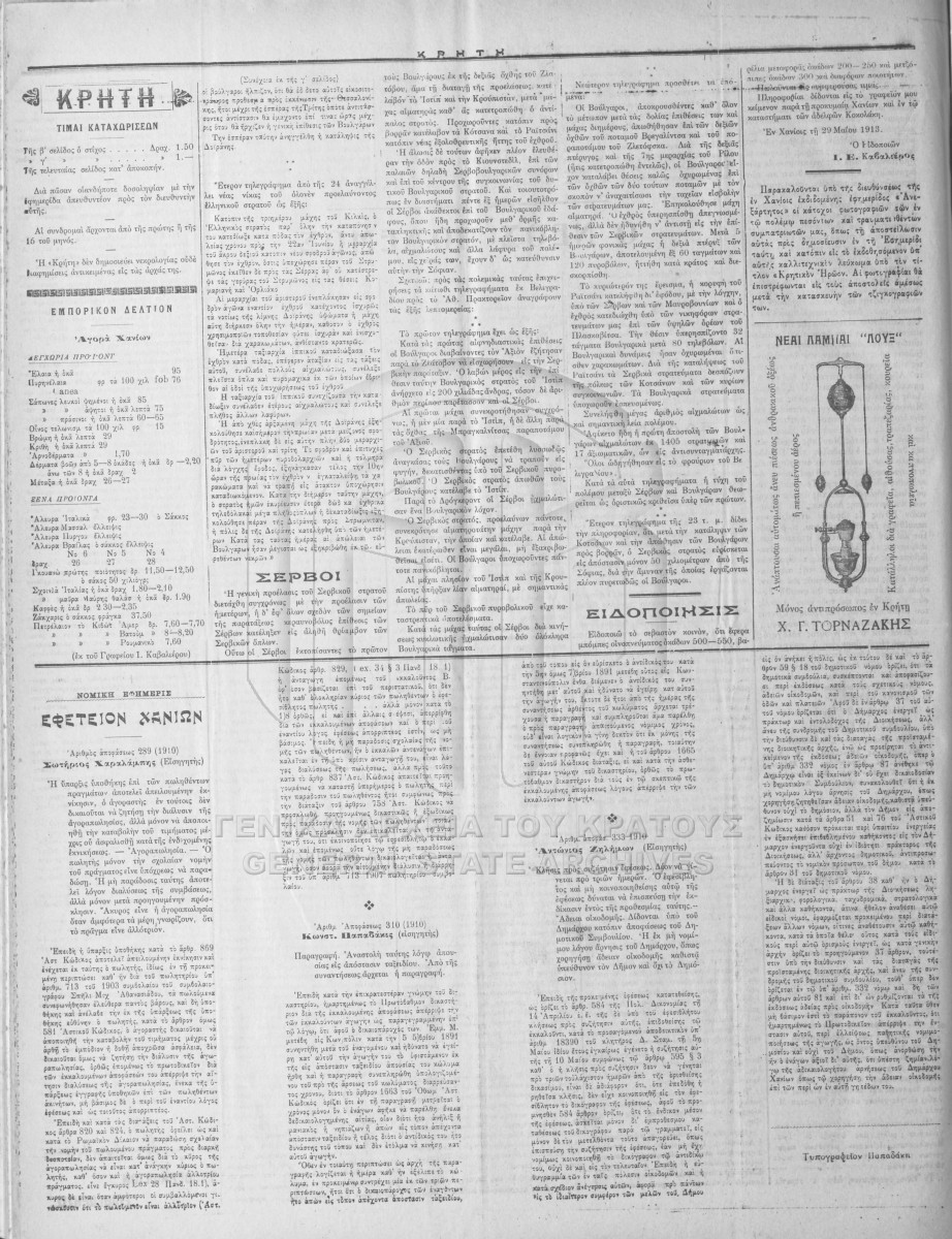 ΑΡΧΕΙΟ ΕΦΗΜΕΡΙΔΩΝ ΧΑΝΙΩΝ  [1911 - 1913]