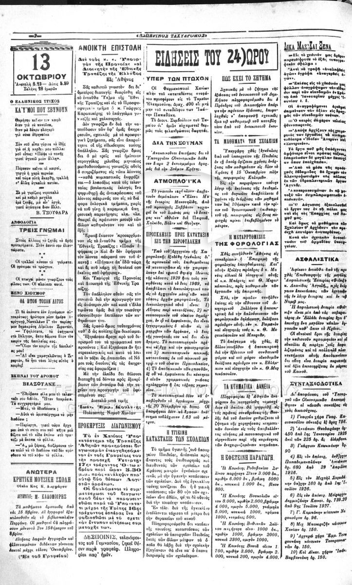 Contents: Εσπερινός Ταχυδρόμος.