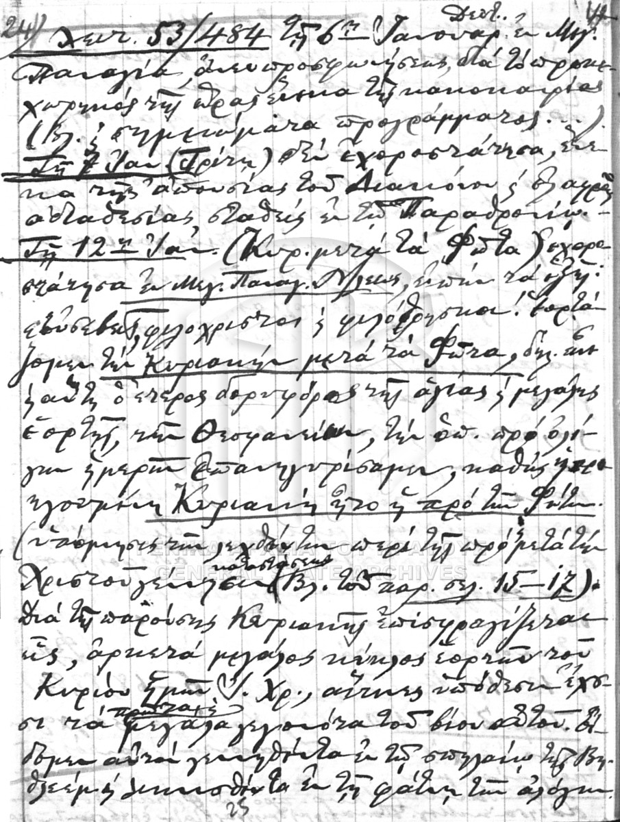 Contents: Ημερολόγιο (παλαιά συνέχεια απομνημονευμάτων, αριθμός λειτουργιών, περίληψη λόγων του Επισκόπου Πέτρας Διονύσιου). Ημερο...