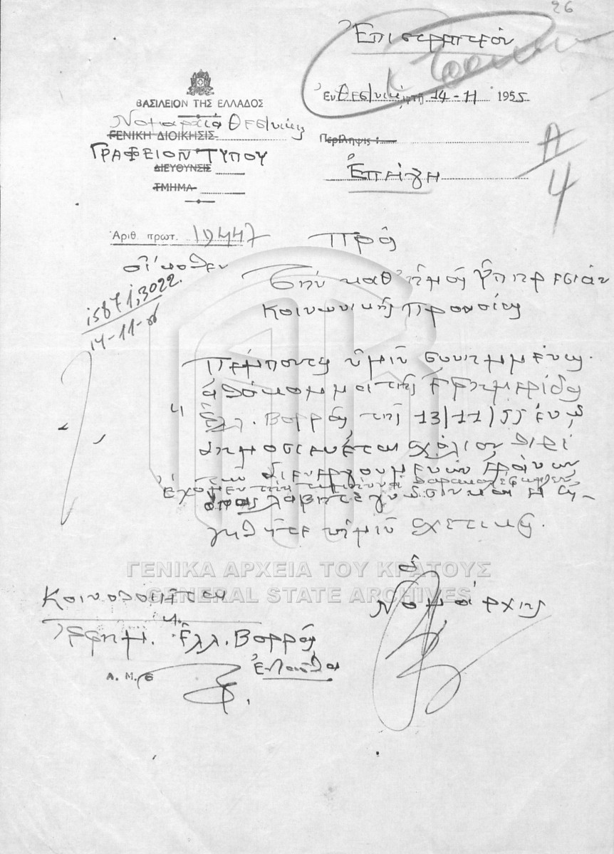 ΓΕΝΙΚΗ ΔΙΟΙΚΗΣΗ ΒΟΡΕΙΟΥ ΕΛΛΑΔΟΣ. Α/4: ΛΟΓΟΚΡΙΣΙΑ, ΠΑΡΑΚΟΛΟΥΘΗΣΗ ΕΓΧΩΡΙΟΥ ΤΥΠΟΥ, ΠΡΟΠΑΓΑΝΔΙΣΤΙΚΩΝ ΒΙΒΛΙΩΝ ΚΑΙ ΕΝΤΥΠΩΝ  [1922 - 1956]