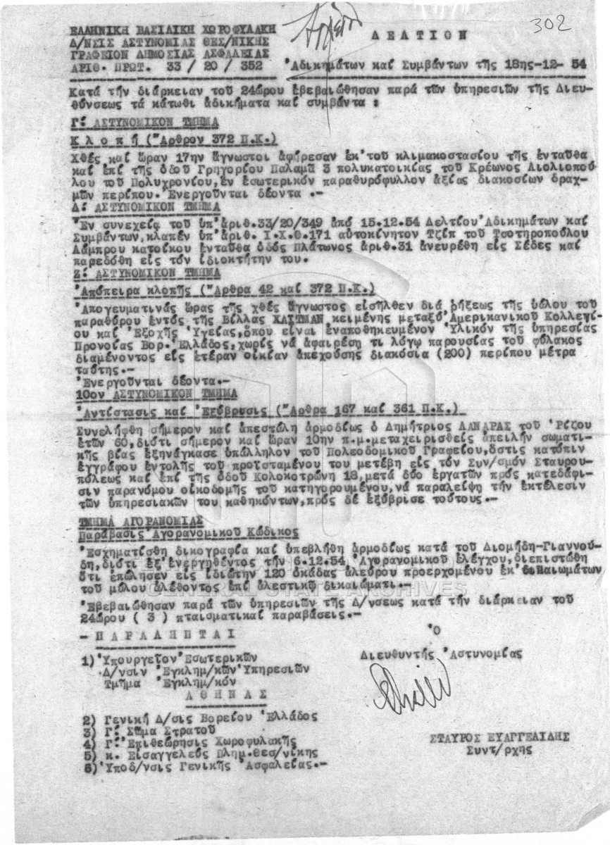 Τεκμήριο #001 - ΓΕΝΙΚΗ ΔΙΟΙΚΗΣΗ ΒΟΡΕΙΟΥ ΕΛΛΑΔΟΣ. Β/24: ΑΝΑΦΟΡΕΣ ΑΣΤΥΝΟΜΙΑΣ  [1953]