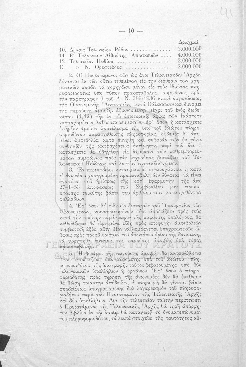Item #005 - ΓΕΝΙΚΗ ΔΙΟΙΚΗΣΗ ΒΟΡΕΙΟΥ ΕΛΛΑΔΟΣ. Δ/2: ΔΙΩΞΗ ΛΑΘΡΕΜΠΟΡΙΟΥ ΚΑΙ ΛΑΘΡΑΛΙΕΙΑΣ, ΚΑΤΑΣΤΡΟΦΗ ΚΑΙ ΕΚΠΟΙΗΣΗ ΛΑΘΡΑΙΩΝ - ΤΥΧΕΡΑ ΠΑΙΧΝΙΔΙΑ - ΑΜΜΟΛΗΨΙΑ  [1953]