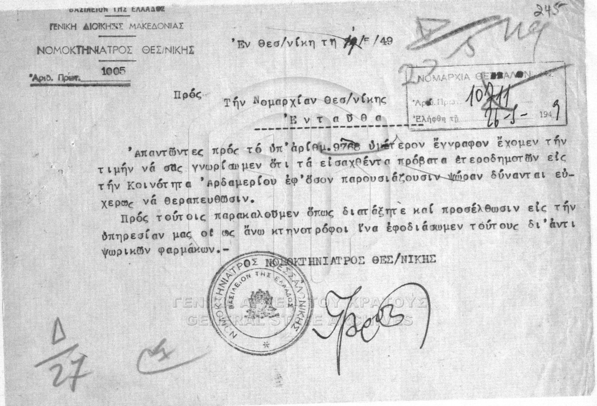 Fichier #D00027 - ΓΕΝΙΚΗ ΔΙΟΙΚΗΣΗ ΒΟΡΕΙΟΥ ΕΛΛΑΔΟΣ. Δ/27: ΚΤΗΝΟΤΡΟΦΙΑ ΚΑΙ ΖΩΟΤΕΧΝΙΑ. ΔΑΣΗ. ΘΗΡΑ  [1945 - 1949]