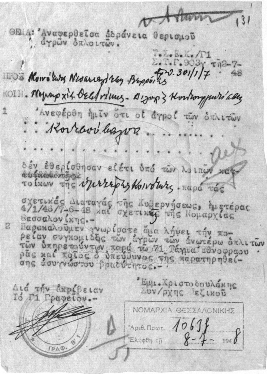 Item #001 - ΓΕΝΙΚΗ ΔΙΟΙΚΗΣΗ ΒΟΡΕΙΟΥ ΕΛΛΑΔΟΣ. Δ/51: ΠΕΡΙΘΑΛΨΗ ΣΕΙΣΜΟΠΑΘΩΝ, ΠΛΗΜΜΥΡΟΠΑΘΩΝ ΚΑΙ ΑΝΑΞΙΟΠΑΘΟΥΝΤΩΝ ΕΝ ΓΕΝΕΙ  [1948]