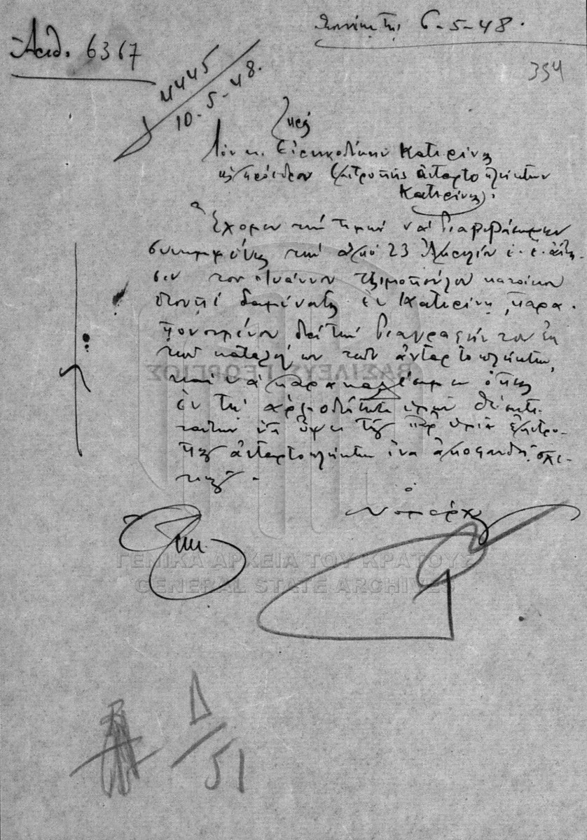Item #001 - ΓΕΝΙΚΗ ΔΙΟΙΚΗΣΗ ΒΟΡΕΙΟΥ ΕΛΛΑΔΟΣ. Δ/51: ΠΕΡΙΘΑΛΨΗ ΣΕΙΣΜΟΠΑΘΩΝ, ΠΛΗΜΜΥΡΟΠΑΘΩΝ ΚΑΙ ΑΝΑΞΙΟΠΑΘΟΥΝΤΩΝ ΕΝ ΓΕΝΕΙ  [1948]