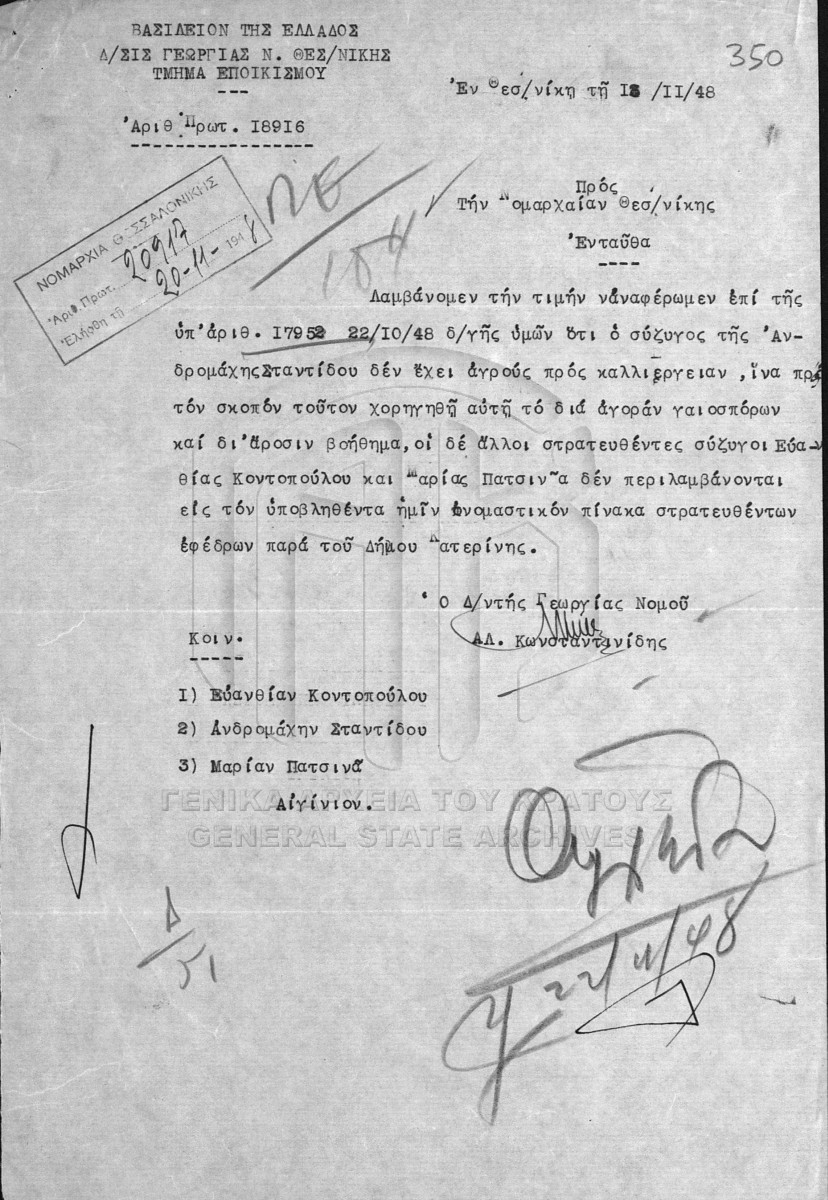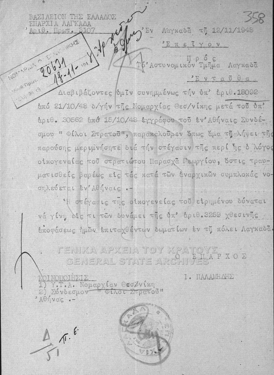 Τεκμήριο #001 - ΓΕΝΙΚΗ ΔΙΟΙΚΗΣΗ ΒΟΡΕΙΟΥ ΕΛΛΑΔΟΣ. Δ/51: ΠΕΡΙΘΑΛΨΗ ΣΕΙΣΜΟΠΑΘΩΝ, ΠΛΗΜΜΥΡΟΠΑΘΩΝ ΚΑΙ ΑΝΑΞΙΟΠΑΘΟΥΝΤΩΝ ΕΝ ΓΕΝΕΙ  [1948]