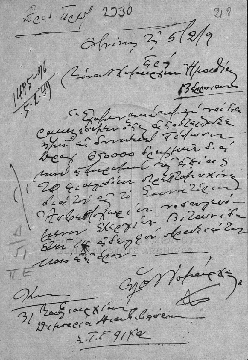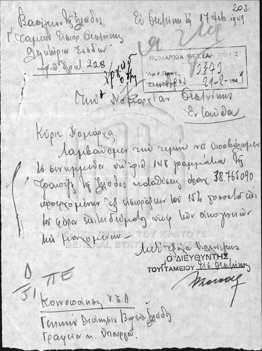 Item #001 - ΓΕΝΙΚΗ ΔΙΟΙΚΗΣΗ ΒΟΡΕΙΟΥ ΕΛΛΑΔΟΣ. Δ/51: ΠΕΡΙΘΑΛΨΗ ΣΕΙΣΜΟΠΑΘΩΝ, ΠΛΗΜΜΥΡΟΠΑΘΩΝ ΚΑΙ ΑΝΑΞΙΟΠΑΘΟΥΝΤΩΝ ΕΝ ΓΕΝΕΙ  [1948-1949]