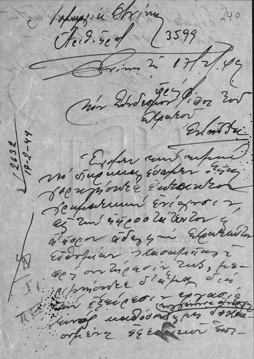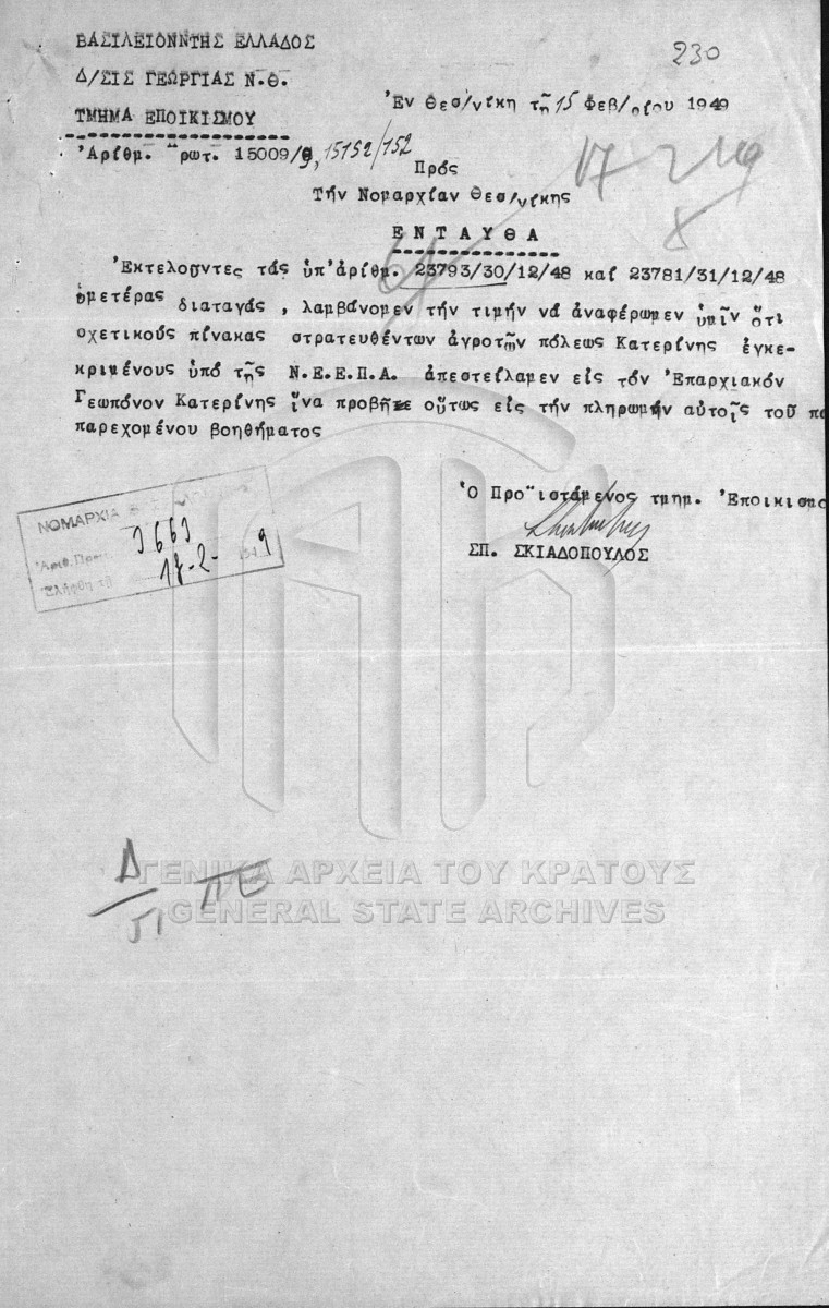 Item #001 - ΓΕΝΙΚΗ ΔΙΟΙΚΗΣΗ ΒΟΡΕΙΟΥ ΕΛΛΑΔΟΣ. Δ/51: ΠΕΡΙΘΑΛΨΗ ΣΕΙΣΜΟΠΑΘΩΝ, ΠΛΗΜΜΥΡΟΠΑΘΩΝ ΚΑΙ ΑΝΑΞΙΟΠΑΘΟΥΝΤΩΝ ΕΝ ΓΕΝΕΙ  [1948-1949]