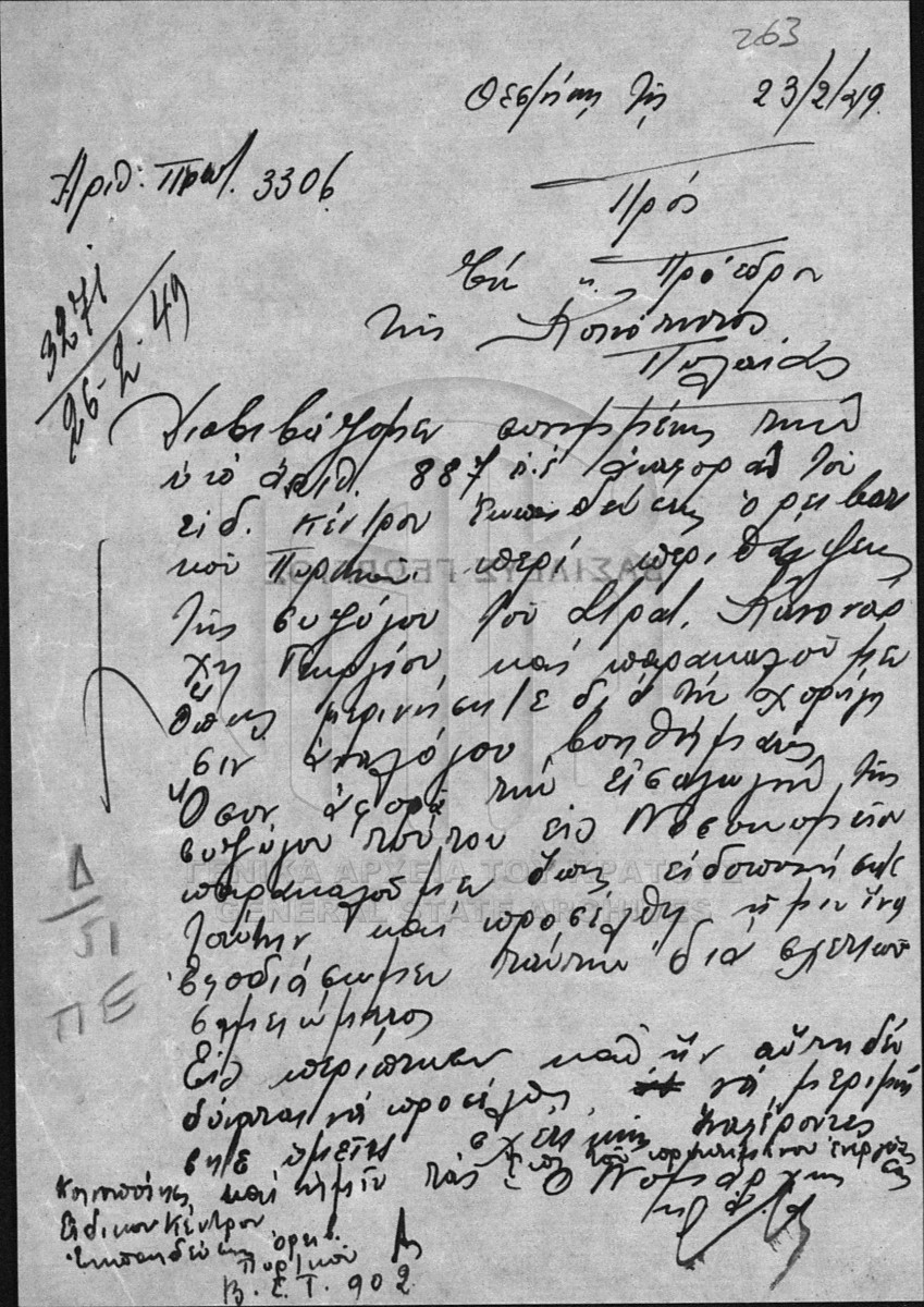 Pièce #001 - ΓΕΝΙΚΗ ΔΙΟΙΚΗΣΗ ΒΟΡΕΙΟΥ ΕΛΛΑΔΟΣ. Δ/51: ΠΕΡΙΘΑΛΨΗ ΣΕΙΣΜΟΠΑΘΩΝ, ΠΛΗΜΜΥΡΟΠΑΘΩΝ ΚΑΙ ΑΝΑΞΙΟΠΑΘΟΥΝΤΩΝ ΕΝ ΓΕΝΕΙ  [1948-1949]