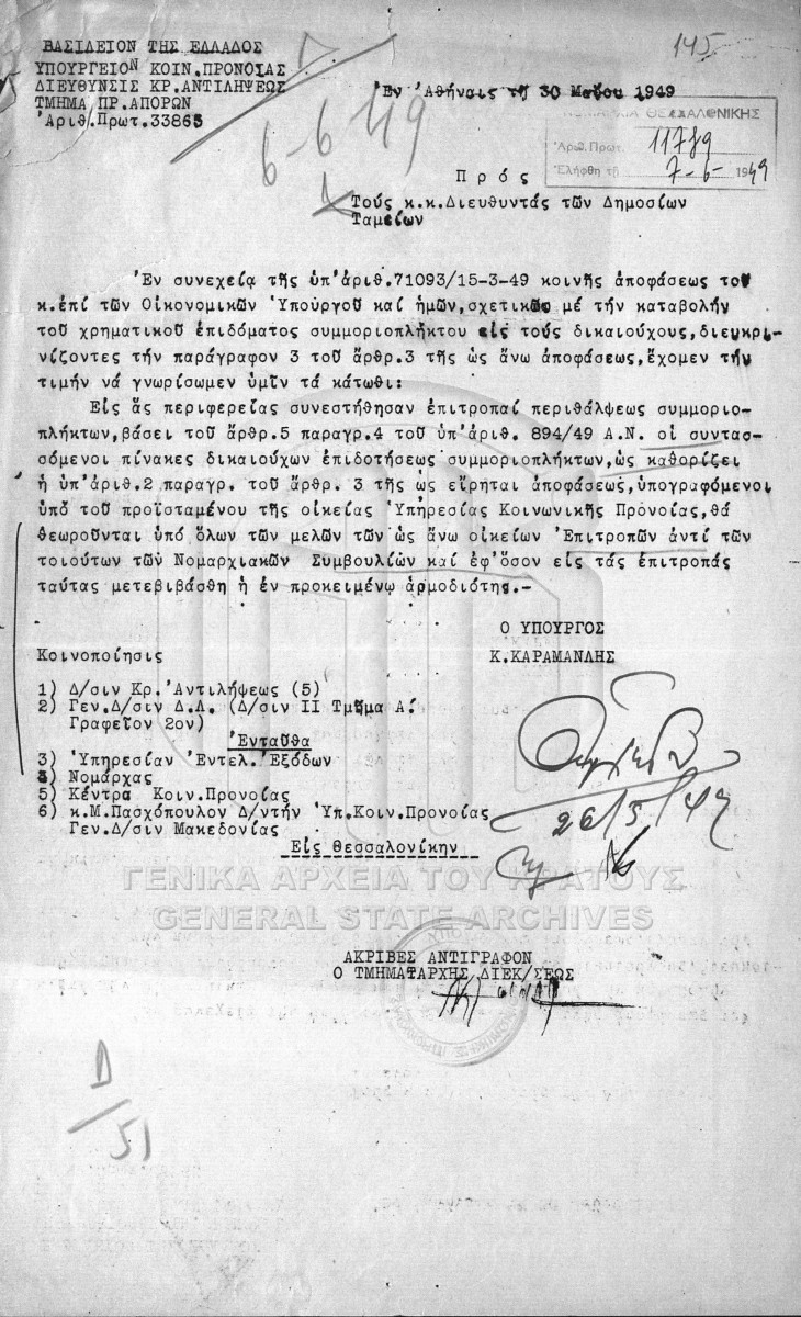[Item] GRGSA-IAM_ADM002.01.FD00051.SF000020.IT000001 Item #001 - ΓΕΝΙΚΗ ΔΙΟΙΚΗΣΗ ΒΟΡΕΙΟΥ ΕΛΛΑΔΟΣ. Δ/51: ΠΕΡΙΘΑΛΨΗ ΣΕΙΣΜΟΠΑΘΩΝ, ΠΛΗΜΜΥΡΟΠΑΘΩΝ ΚΑΙ ΑΝΑΞΙΟΠΑΘΟΥΝΤΩΝ ΕΝ ΓΕΝΕΙ [1948-1949] Υγειονομική περίθαλψη, χορήγηση πιστώσεων, έγκριση αιτήσεων για μόνιμη εγκατάσταση στη Θεσ/νίκη. |