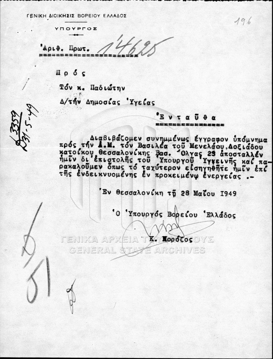 Τεκμήριο #001 - ΓΕΝΙΚΗ ΔΙΟΙΚΗΣΗ ΒΟΡΕΙΟΥ ΕΛΛΑΔΟΣ. Δ/51: ΠΕΡΙΘΑΛΨΗ ΣΕΙΣΜΟΠΑΘΩΝ, ΠΛΗΜΜΥΡΟΠΑΘΩΝ ΚΑΙ ΑΝΑΞΙΟΠΑΘΟΥΝΤΩΝ ΕΝ ΓΕΝΕΙ  [1945-1949]